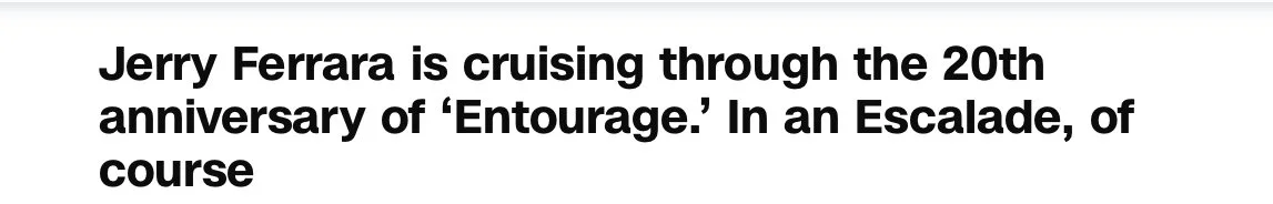 On the 20th anniversary of Entourage, we teamed up Jerry Ferrara with the all new Cadillac Escalade to see how much things have changes since he last drove one on the show.